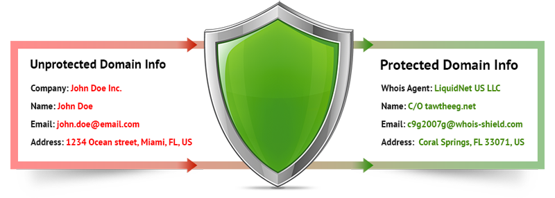 حماية بيانات الملكية لإسم النطاق WHOIS Information أو (حماية المعرّف) هي ببساطة إخفاء بيانات المالك لإسم النطاق مثل الاسم، البريد الإلكتروني، العنوان وغيرها من البيانات الأخرى، كما في الصورة بالإسفل.