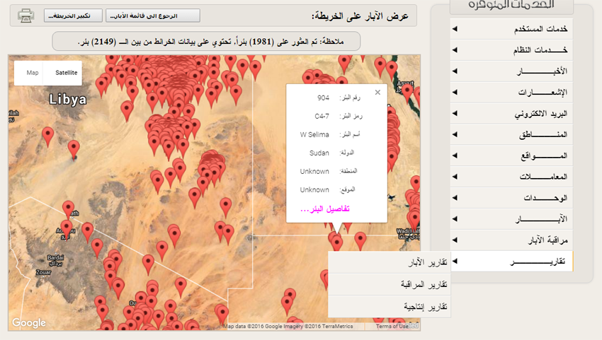 أصحبت للخرائط أهمية كبرى في عدة أنظمة وخصوصا الأنظمة التفاعلية، فالعديد منها تعتمد على الـ GPS وهو نظام تحديد المواقع عن طريق الأقمار الصناعية وكذلك على أنظمة الخرائط مثل Google Maps والتي توفر بنيه تحتيه من خلال API يمكن إستغلاله للحصول على عدة تطبيقات للخرائط بكافة أنواعها. لقد قمنا في صفحات ليبيا ببناء عدة أنظمة تعتمد على الخرائط ومن بينها نظام لإدارة بيانات الهيئة المشتركة لتنمية وتطوير الخزان الرملي النوبي، حيث يوفر هذا النظام أستعراضاً لكافة الآبار (المنتجة للمياه العذبة) وعلى منطقة جغرافية تمتمد على اربع دول وهي (ليبيا - مصر - السودان - تشاد). ويمكن عن طريق هذا النظام إدارة بيانات الآبار الموجودة أو إضافة بيانات آبار جديد وعرضها ومعلوماتها على خرائط Google (كما في الصورة بالأسفل) أو حتى من خلال تطبيق Google Earth، كما يمكن إصدار عدة تقارير بيانية أو نصية على هذه الآبار.